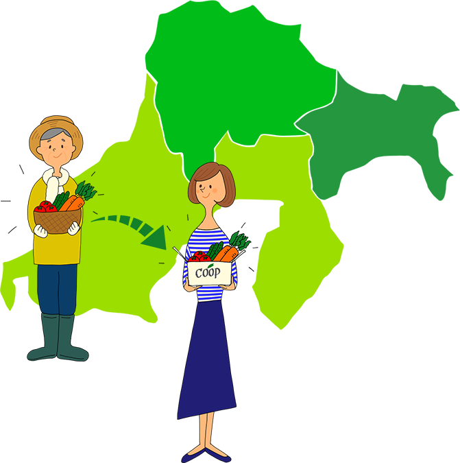 ユーコープの“地元”は、神奈川県・静岡県・山梨県です。生産者が愛着を持って育み、3県それぞれが持つ豊かな風土から生まれた農畜産物や加工品を、身近な食材として味わうことができます。地元食文化の魅力を改めて知ることができ、地域産業の活性化にも貢献しています。